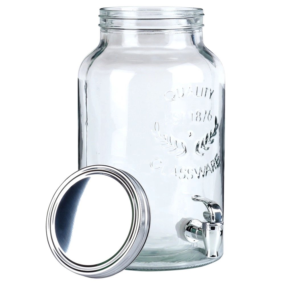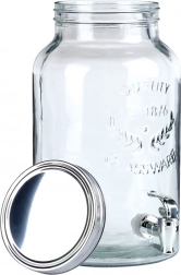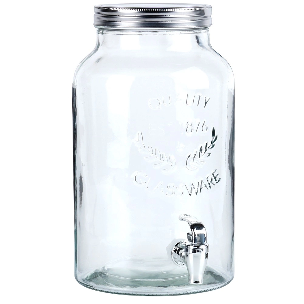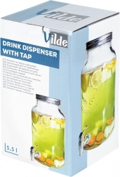 Štýlový sklenený zásobník na nápoje s objemom 6,2 l s praktickým kohútikom a skrutkovacím kovovým viečkom. Ideálny na limonády, punč, ovocné vody aj ľadové čaje. Široký otvor uľahčuje plnenie aj čistenie, reliéfne sklo pôsobí elegantne a materiály sú bezpečné pre styk s potravinami.