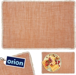 Praktická a dekoratívna podložka pod tanier dodá vášmu stolu elegantný vzhľad a zároveň ho spoľahlivo ochráni. Vďaka obdĺžnikovému tvaru perfektne sedí pod bežné taniere a stolový riad. Oranžový povrch s prírodným béžovým lemovaním podčiarkne útulnosť domova a skvele doplní interiéry v štýle boho.