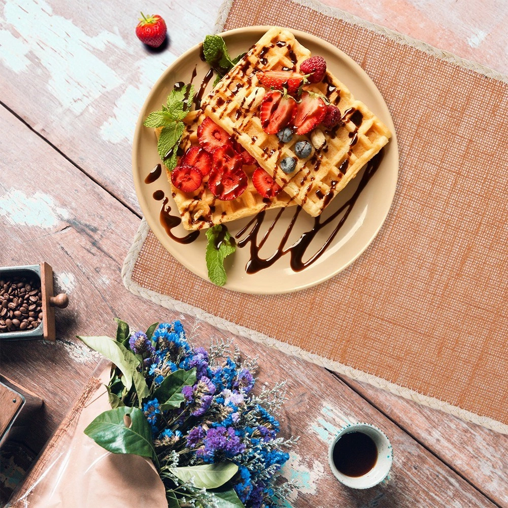 Podložka je vyrobená z odolného polyesterového vlákna, takže je pevná, odolná a ľahká na údržbu – nečistoty stačí zotrieť vlhkou handričkou. Môžete ju využiť nielen pod taniere a hrnčeky, ale aj ako ochrannú podložku pod vázy či ďalšie dekorácie, aby sa predišlo škrabancom a škvrnám na doske stola.