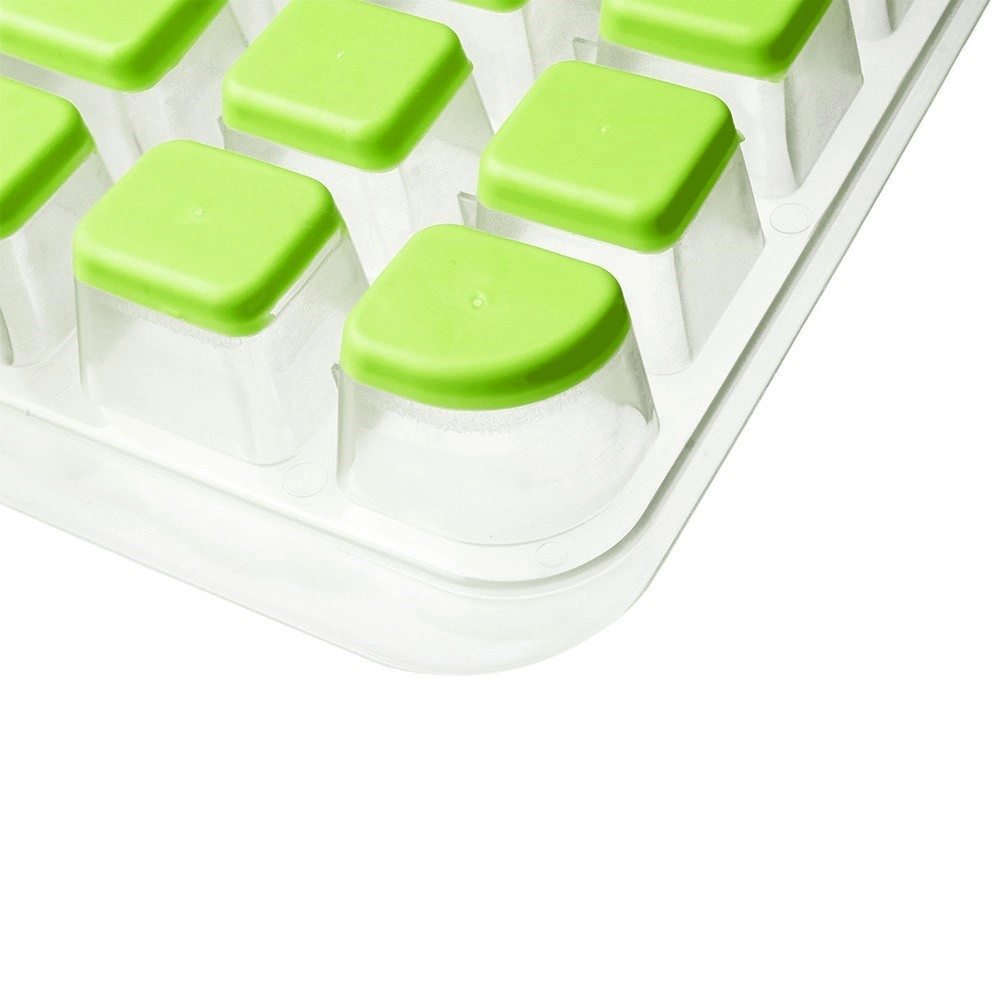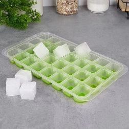 Táto robustná forma kombinuje priehľadné telo a silikónové dno v zelených odtieňoch pre pohodlné vyberanie bez lámania kociek. Vďaka rozmerom 32,5 × 18 × 3 cm pripravíte veľké množstvo ľadu naraz – ideálne na domáce oslavy, koktaily aj každodenné osvieženie nápojov.