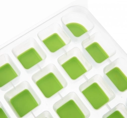 - Jednoduché vybratie – pružné silikónové dno umožní rýchle vytlačenie každej kocky.