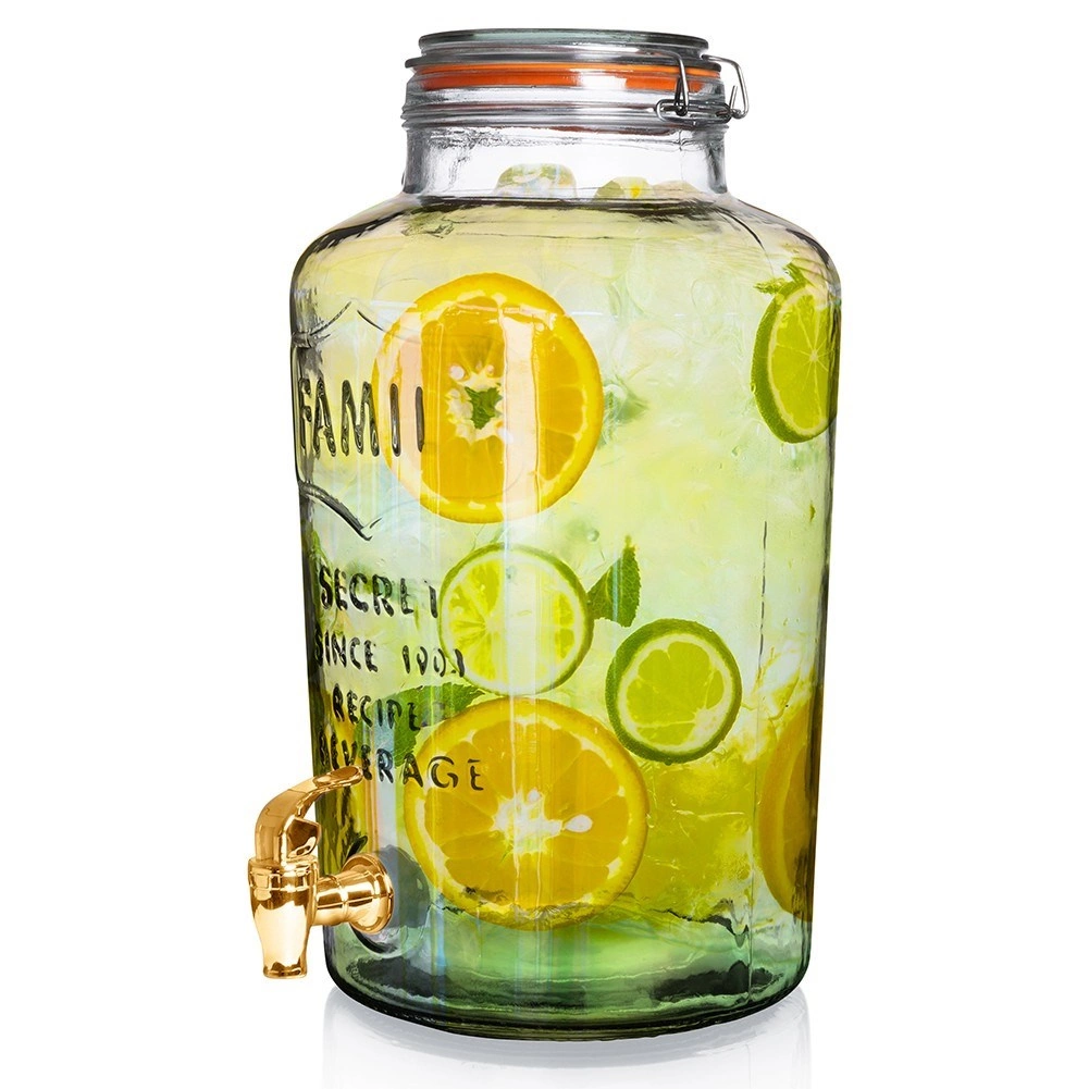 - Sklenené dávkovače nápojov, súdky s kohútikom