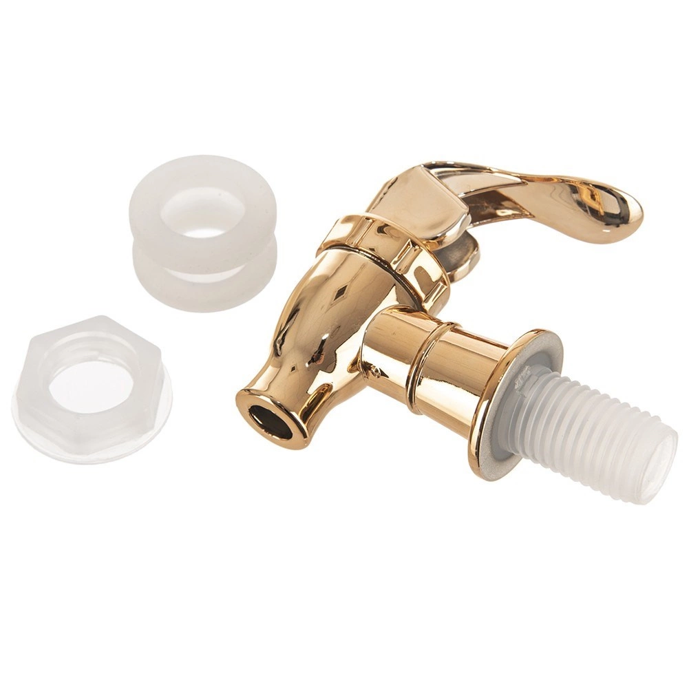 Elegantný zlatý kohútik je ideálnym riešením, keď sa pôvodná výpusť vášho nápojového dispenseru poškodí. Ľahko ho vymeníte za niekoľko minút a vyhnete sa tak kúpe celkom nového súdka/dávkovača. Balenie obsahuje všetko potrebné pre tesné a bezpečné uchytenie.