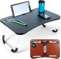 Praktický skladací stolík do postele či na gauč ponúka stabilnú plochu na prácu aj relax. Má slot na tablet/telefón, držiak na nápoj a protišmykové nožičky pre istotu a pohodlie. Vďaka skladacej konštrukcii sa ľahko prenáša a ukladá.