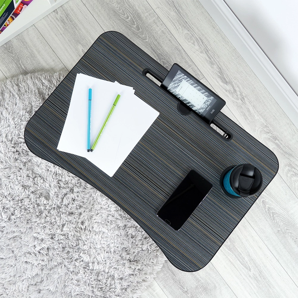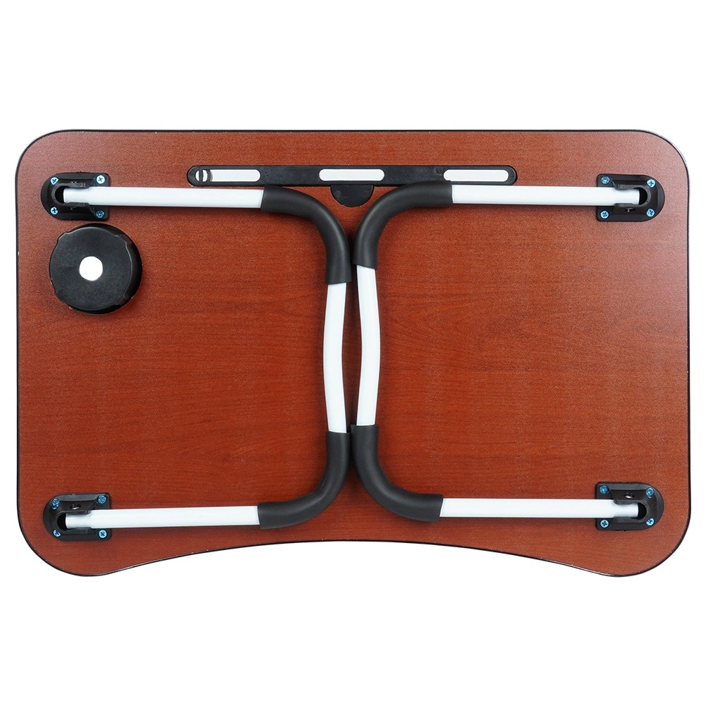 Skladací lapdesk je ideálny na prácu s notebookom alebo tabletom, čítanie kníh aj sledovanie filmov v posteli či na pohovke. Odolná doska z MDF s príjemným povrchom a kovové nohy s gumovými koncovkami zabezpečujú stabilitu a chránia povrchy pred poškrabaním.