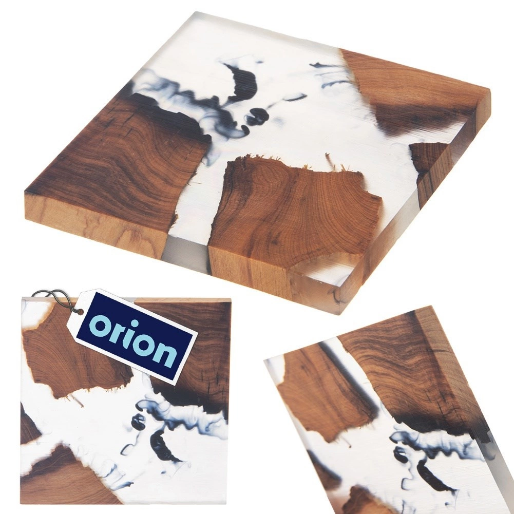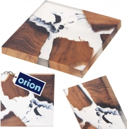 Štvorcová podložka z agátového dreva s vložkou z bielej živice v efektnom „river“ štýle je praktický aj dekoratívny doplnok do kuchyne aj obývačky. Vďaka hladkému povrchu a pevnej hrúbke spoľahlivo chráni dosky stolov pred teplom z horúcich nápojov aj vlhkosťou z vychladených pohárov.