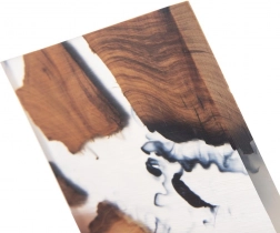 Unikátna kombinácia agátového dreva a bielej živice vytvára efekt riečneho prúdu – každý kus je originál a ozdobí váš stôl.
