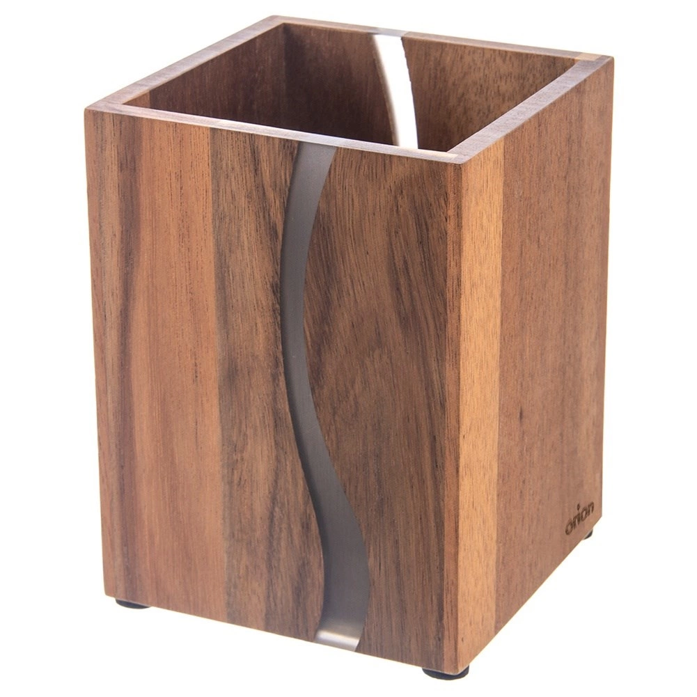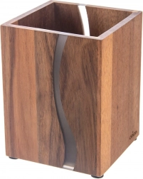 Poriadok na linke aj štýl v detaile. Tento stojan z prírodného akáciového dreva kombinuje odolnosť, dlhú životnosť a dekoratívny prvok v podobe vlnovitej kovovej/živicovej inlay, ktorá pripomína rieku. Skvele poslúži na varešky, metly, nožnice, škrabky aj bežné príbory a udrží ich vždy poruke.