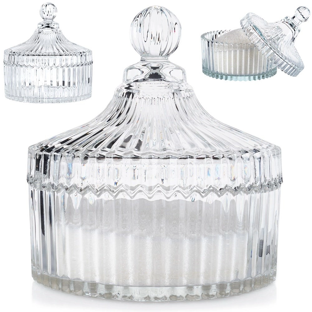 Táto vysoko kvalitná sklenená cukornička prináša spojenie praktickosti a štýlu. Vďaka zdobeniu, ktoré pripomína kryštál, sa stane elegantným doplnkom každej jedálenskej súpravy. Praktické viečko s guľatým knopom chráni obsah pred prachom a umožňuje pohodlné používanie.