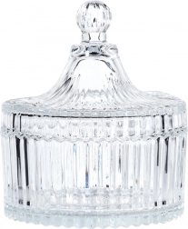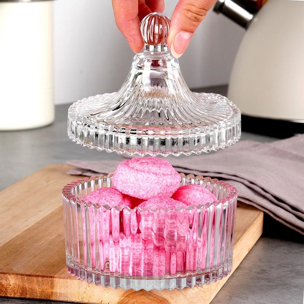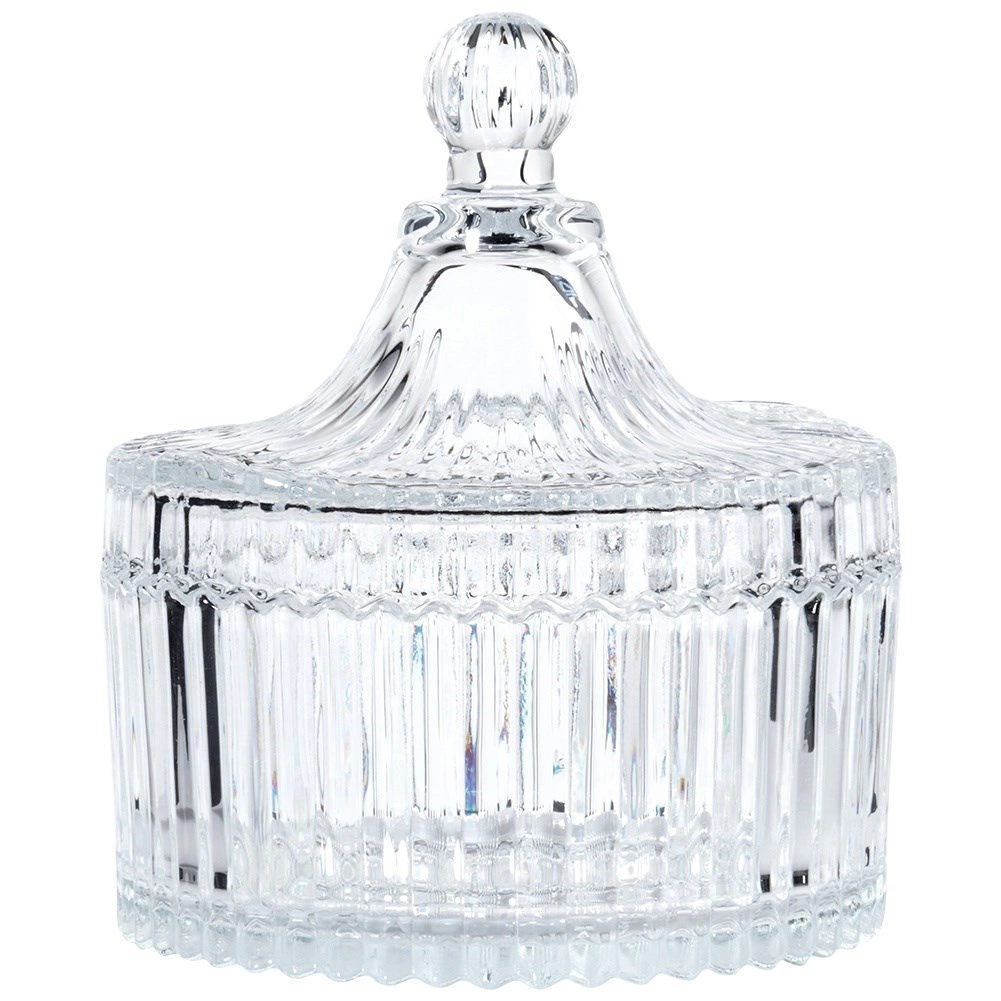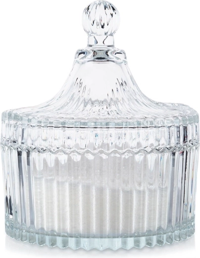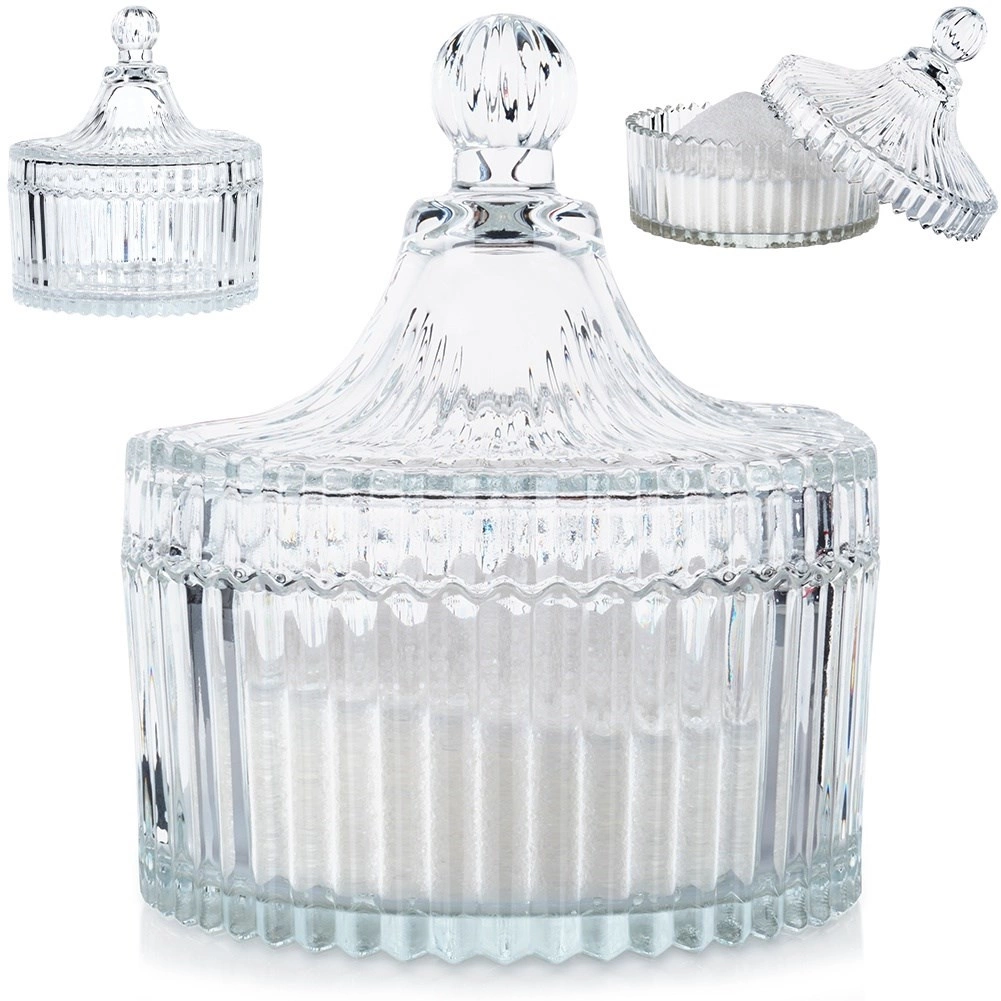 Táto cukornička kombinuje funkčnosť a nadčasový dizajn. Vertikálne ryhovanie a jemne fazetované detaily dodávajú nádobe luxusný vzhľad, zatiaľ čo priehľadné sklo umožňuje ľahkú kontrolu obsahu. Výška bez veka je 5 cm, takže sa pohodlne zmestí na stôl aj do poličky.