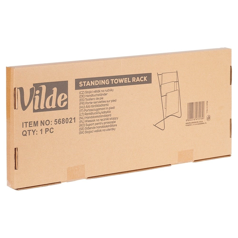 Praktický, voľne stojaci vešiak na uteráky alebo oblečenie s tromi priečkami udrží vašu kúpeľňu prehľadnú a elegantnú. Pevná oceľ s práškovou povrchovou úpravou zaisťuje dlhú životnosť a stabilitu, zatiaľ čo kompaktné rozmery skvelo zapadnú aj do menších priestorov.