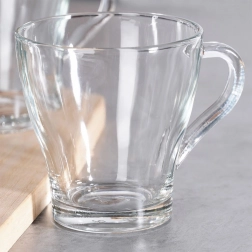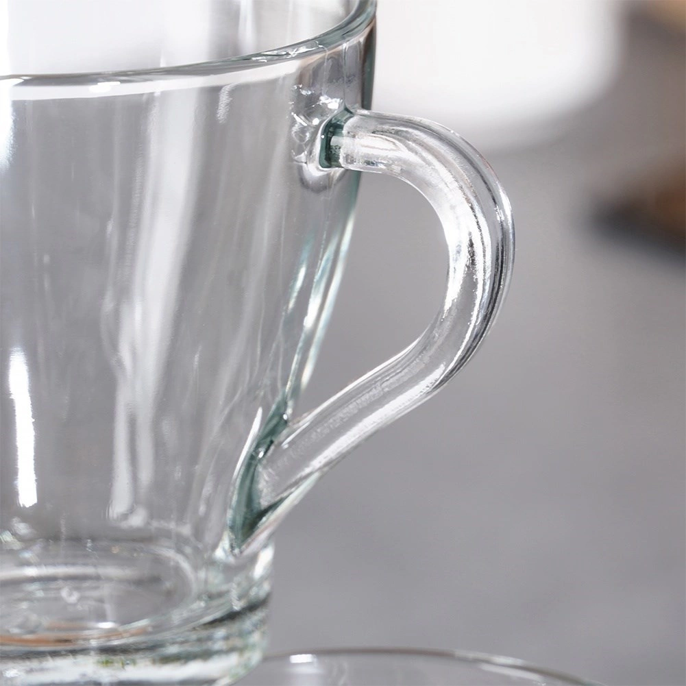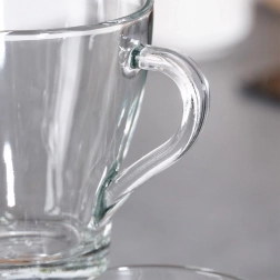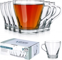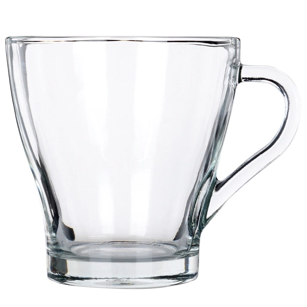 Elegantná sada 6 pohárov s uškom s objemom 250 ml na každodenné používanie aj špeciálne príležitosti. Vyrobené z kvalitného silného skla, vhodné na horúce aj studené nápoje, s ergonomickým uškom pre bezpečný úchop. Poháre sú priehľadné pre efektné servírovanie a ľahko sa udržiavajú – vhodné do umývačky aj mikrovlnnej rúry.