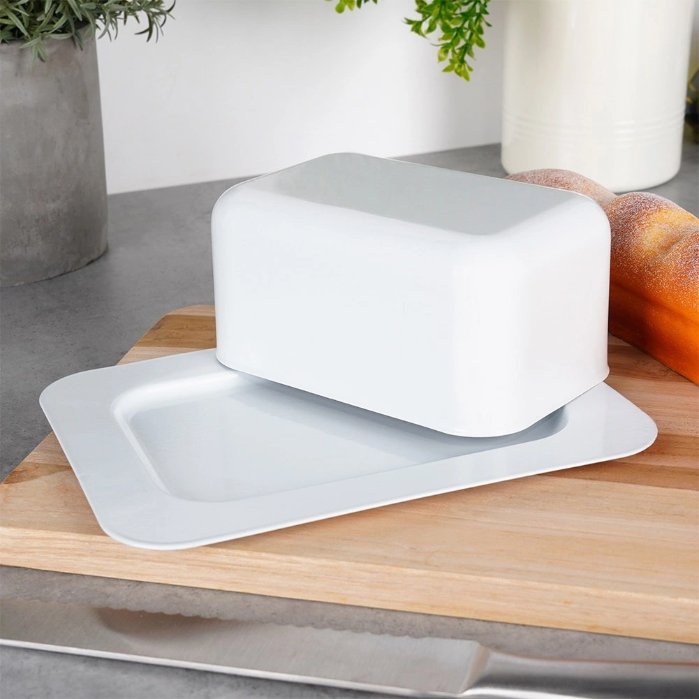 Štýlová oceľová maslenka v bielej farbe je ideálna na skladovanie a servírovanie masla doma aj pri stolovaní s hosťami. Práškovaný povrch pôsobí elegantne a zároveň zvyšuje odolnosť voči poškriabaniu.