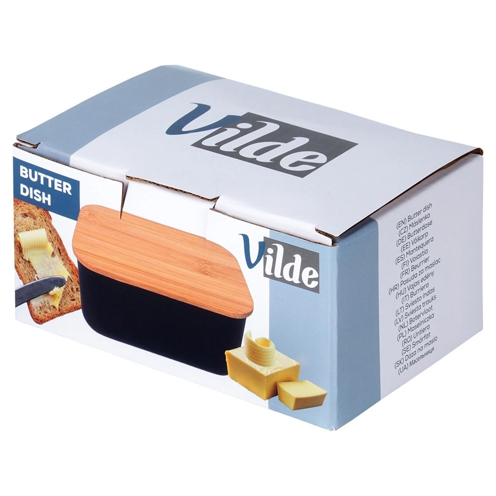 Táto štýlová maslenka je vyrobená z kvalitnej ocele s matnou čiernou povrchovou úpravou a doplnená o viečko z bambusu. Vďaka tomu skvele kombinuje moderný vzhľad a funkčnosť – udržiava maslo chránené pred vzduchom a pachmi z chladničky, aby zostalo dlhšie čerstvé a lahodné.