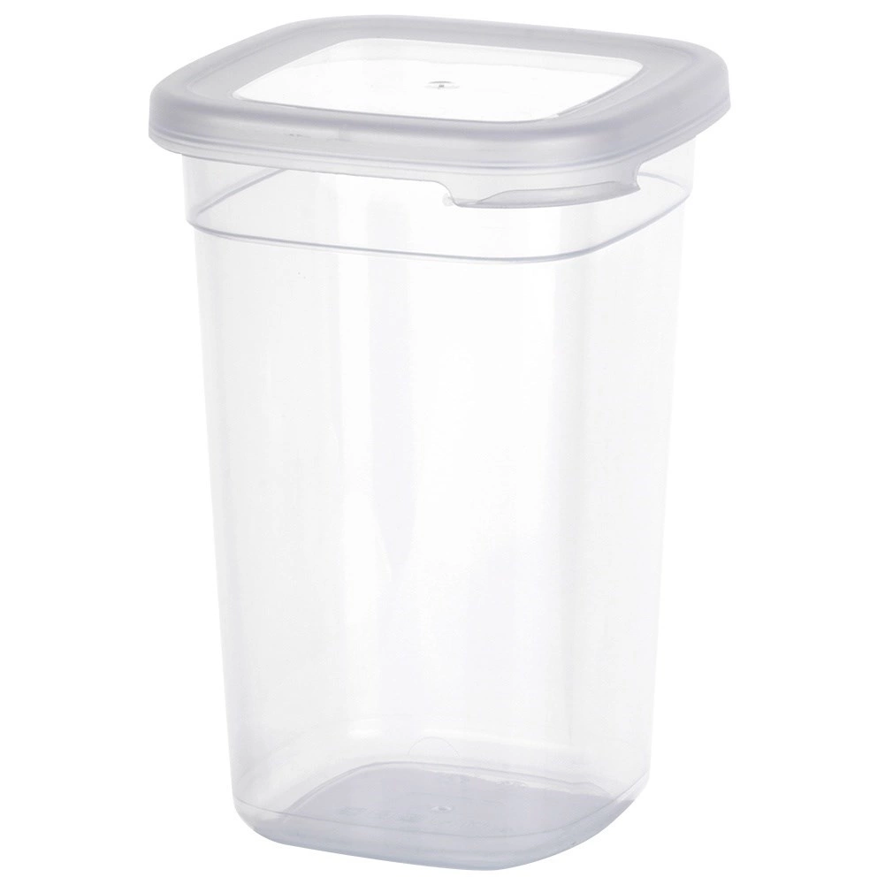 Praktická kuchynská nádoba s objemom 1 l so vzduchotesným vekom, ideálna na sypké potraviny ako káva, cestoviny či orechy. Priehľadné steny na rýchlu kontrolu obsahu, bez BPA, vhodná do chladničky, mrazničky, mikrovlnky (bez veka) aj umývačky riadu. Rozmery 11 × 11 × 16 cm.