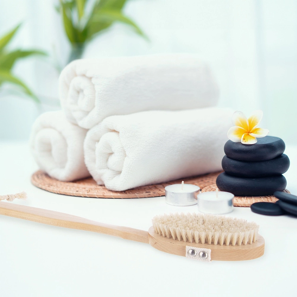 Doprajte svojej pokožke každodennú starostlivosť ako zo spa. Drevená masážna kefa 2v1 s dĺžkou 42 cm a hlavicou 12,5 × 7 cm je ideálna na dosah na chrbát aj precíznu starostlivosť o celé telo. Môžete ju používať nasucho na intenzívnu exfoliáciu a spevnenie pokožky, alebo namokro počas sprchovania a kúpeľa.