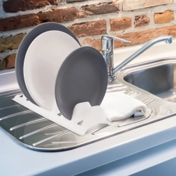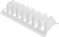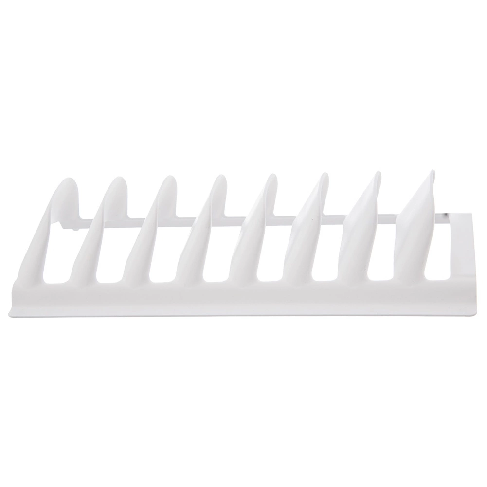 Praktický kuchynský organizér na prehľadné sušenie a uloženie až 8 tanierov alebo pokrievok. Vďaka pevným deliacim priečkam udrží riad stabilne vo zvislej polohe, šetrí miesto v skrinke, zásuvke aj na linke a pomáha zabrániť poškriabaniu. Ľahký, ale odolný plast v bielej farbe je ľahko umývateľný a vhodný do umývačky.