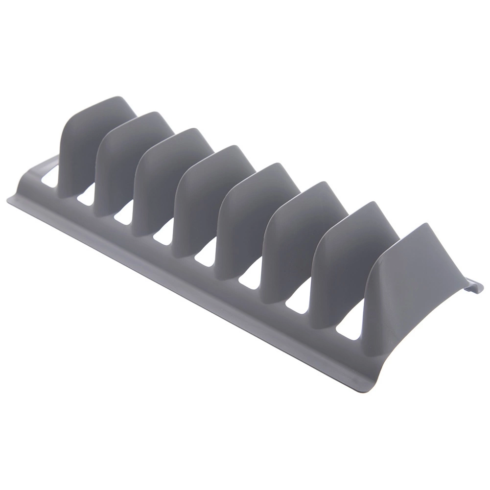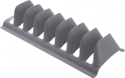 Praktický kuchynský organizér, ktorý udrží pokrievky, taniere aj dosky prehľadne vo zvislej polohe. Pojme až 8 kusov, je ľahký a odolný, z kvalitného plastu v univerzálnej sivej. Vhodný na linku, do skrinky alebo hlboké zásuvky a možno ho umývať v umývačke.