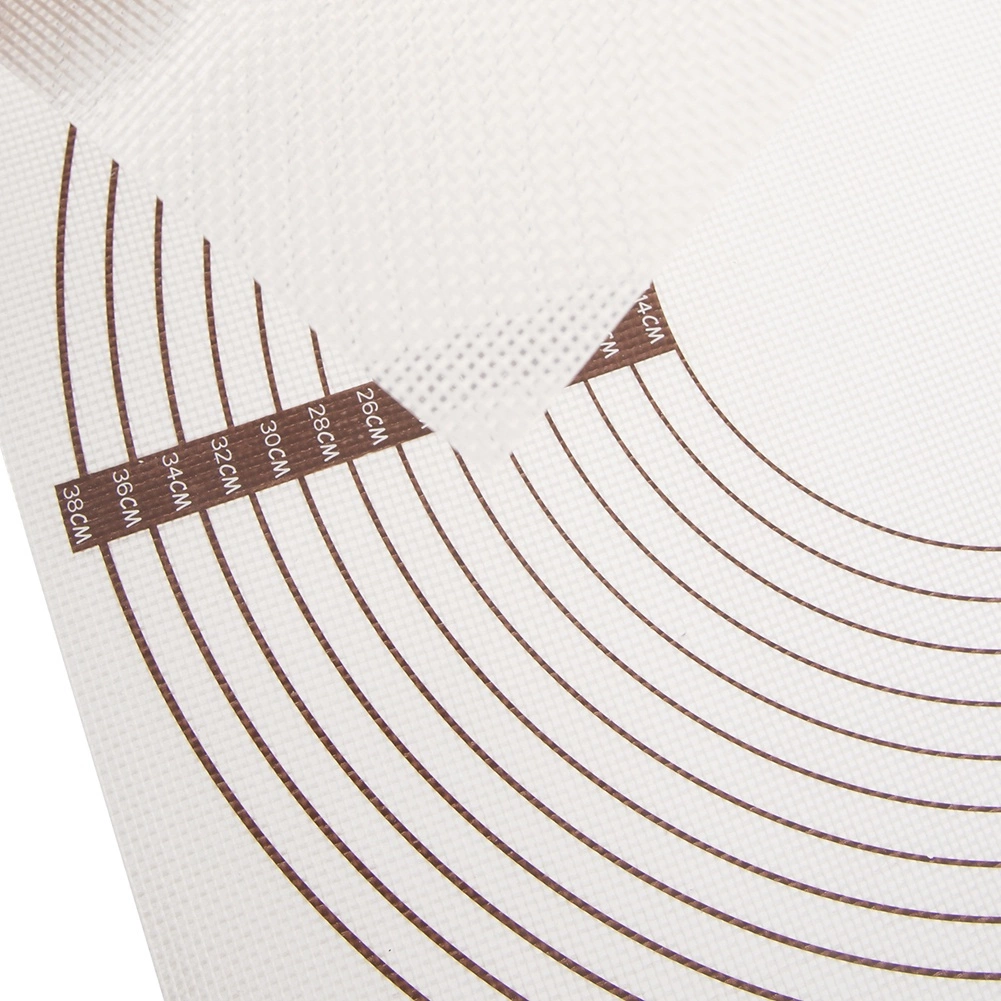 Táto kvalitná silikónová podložka so spevnením zo sklených vlákien ponúka veľkú pracovnú plochu a presné meracie krúžky na pizzu a korpusy aj stupnicu v centimetroch. Vďaka nepriľnavému povrchu stačí minimum múky a cesto sa nelepí.