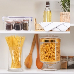 Urobte si poriadok v chladničke aj špajzi. Priehľadný organizér z rady Urovnejto s odnímateľným vekom udrží zeleninu, ovocie aj balené potraviny pekne pokope, chránené pred vlhkosťou a pachmi. Praktické úchyty umožnia ľahké vysunutie aj z hlbších políc a ploché veko podporuje bezpečné stohovanie viacerých boxov nad sebou.