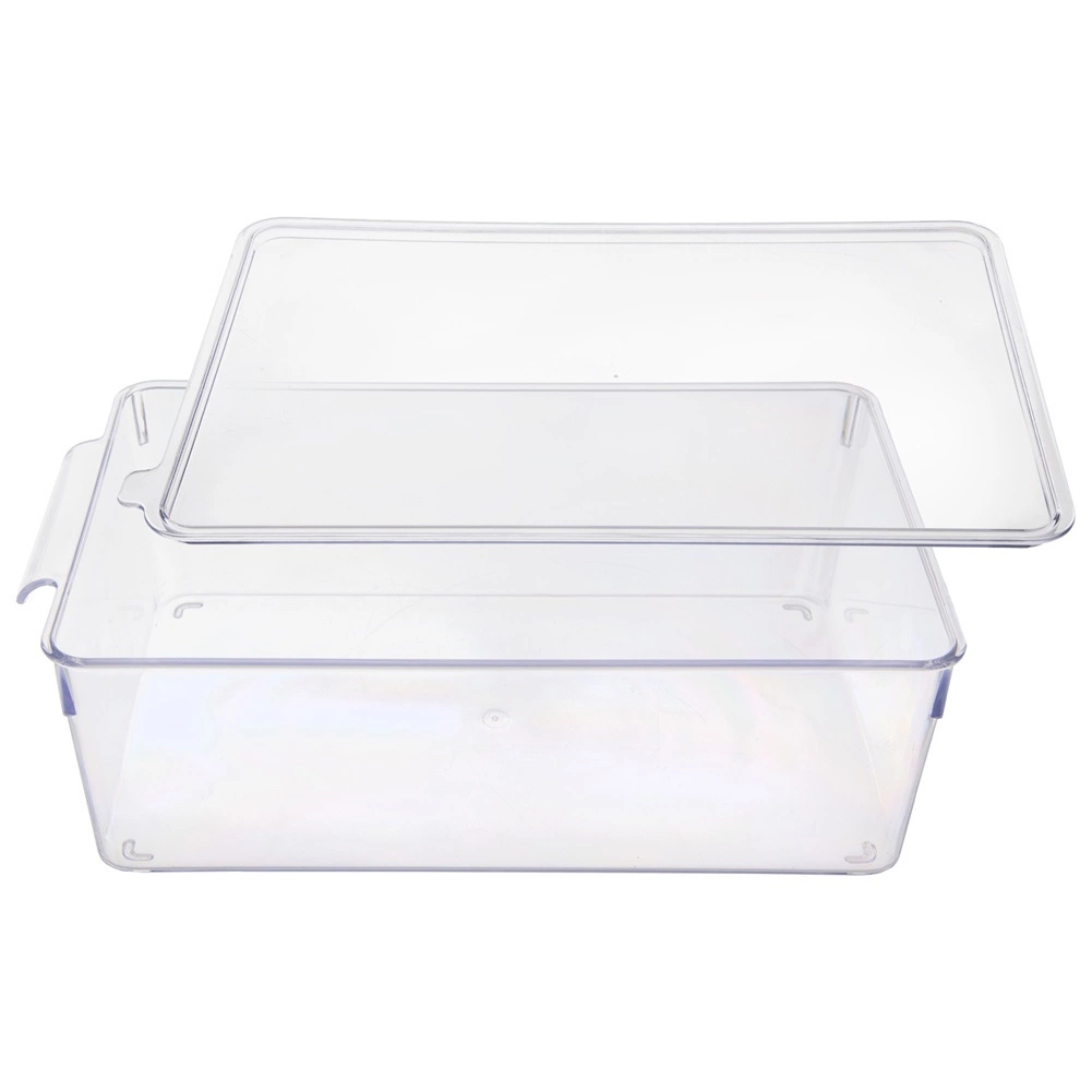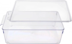 Praktický kuchynský organizér do chladničky s odnímateľným vekom s rozmermi 32,5 × 20 × 10,5 cm udrží potraviny prehľadne a dlhšie čerstvé. Vďaka priehľadnému prevedeniu okamžite vidíte obsah, integrované úchyty uľahčia manipuláciu a ploché veko umožní stohovanie. Vyrobený z odolného, zdravotne nezávadného plastu, ktorý je teplotne odolný od -10 °C do +90 °C.