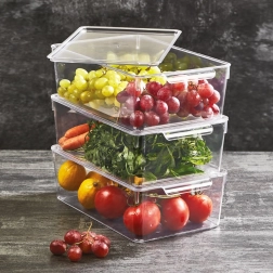 Vysoko kvalitný transparentný plast je pevný, odolný a bezpečný pre potraviny. Rozsah použitia od mrazničky po teplejšie prostredie (-10 °C až +90 °C) zaisťuje univerzálnosť nielen do chladničky, ale aj do kuchynských skriniek či kancelárie.