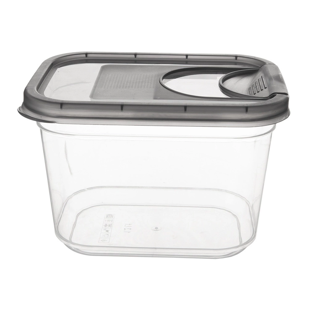 Praktický zásobník na sypké potraviny s integrovaným dávkovacím viečkom s objemom 1,3 l udrží vaše ingrediencie dlhšie čerstvé a prehľadne uložené. Vďaka priehľadnému telu máte obsah vždy pod kontrolou, zatiaľ čo tesniace viečko a dávkovací otvor uľahčia každodenné používanie. Vyrobené z plastu bez BPA, vhodné do chladničky, mrazničky aj umývačky a na ohrev v mikrovlnnej rúre bez viečka.