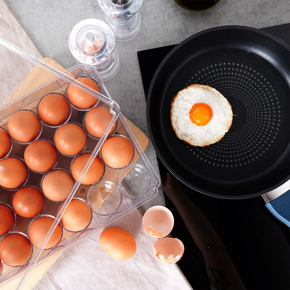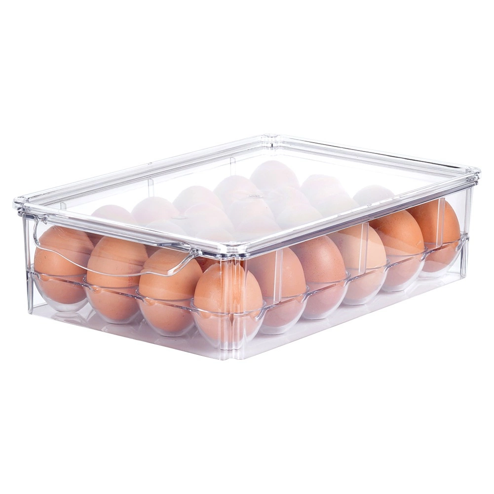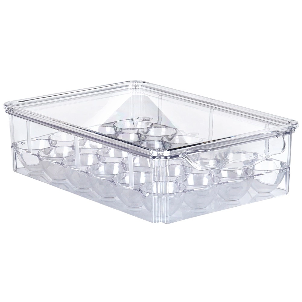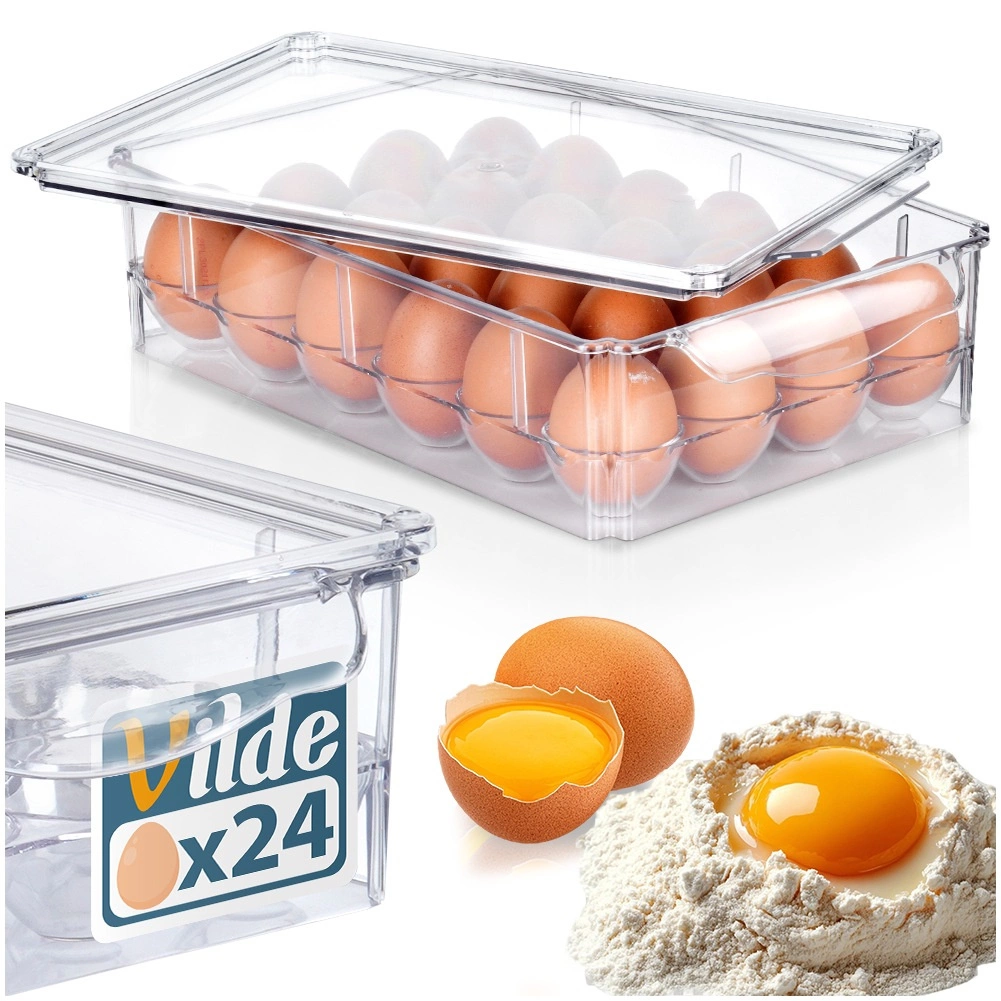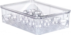 Udržte poriadok v chladničke s priestranným organizérom na vajcia, ktorý pojme až 24 kusov. Odolné a úplne priehľadné prevedenie vám umožní okamžitú vizuálnu kontrolu zásob, zatiaľ čo tvarované lôžka bezpečne fixujú každé vajce. Praktické veko chráni pred cudzími pachmi a vlhkosťou a umožňuje pohodlné stohovanie viacerých boxov na seba.