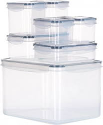 Táto univerzálna sada zahŕňa päť veľkostí na ukladanie surovín, jedál aj desiat. Transparentné prevedenie umožní rýchlu kontrolu obsahu bez otvárania a štyri bočné klipy so silikónovým tesnením zaistia spoľahlivú tesnosť pri skladovaní aj prenášaní.