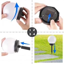 Každá lampa sa skladá z glóbusu, predlžovacej tyče a hrotu na ľahké zapichnutie do zeme. Integrovaný súmrakový senzor lampu automaticky rozsvieti po zotmení, vypínač umožní ručné ovládanie. Vďaka IP44 sú svetlá odolné proti striekajúcej vode a prachu.