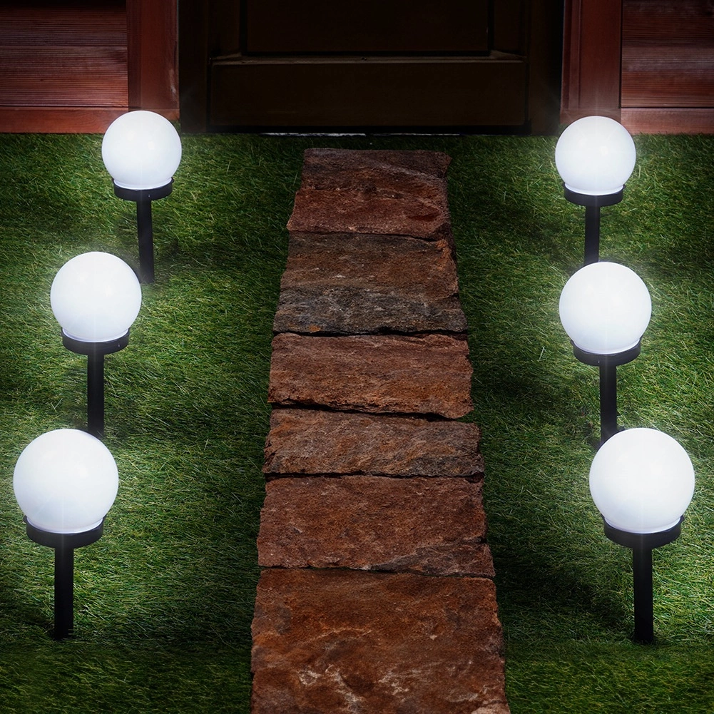 Súprava šiestich guľových svetiel rovnomerne osvetlí chodníky a záhradné plochy. Odolnosť IP44 pre vonkajšie použitie.