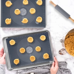 Materiál odolá teplotám −40 °C až +260 °C. Podložku môžete použiť v rúre, mikrovlnke aj mrazničke a po práci ju jednoducho umyť v umývačke.