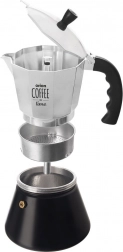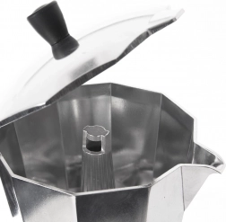 Praktická moka kanvička s objemom 450 ml na prípravu tradičného talianskeho espressa s bohatou arómou. Vyrobená z kvalitného hliníka so žiaruvzdornou rukoväťou, má bezpečnostný ventil a je vhodná na všetky typy sporákov vrátane indukcie. Súčasťou je aj náhradné silikónové tesnenie.