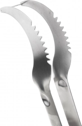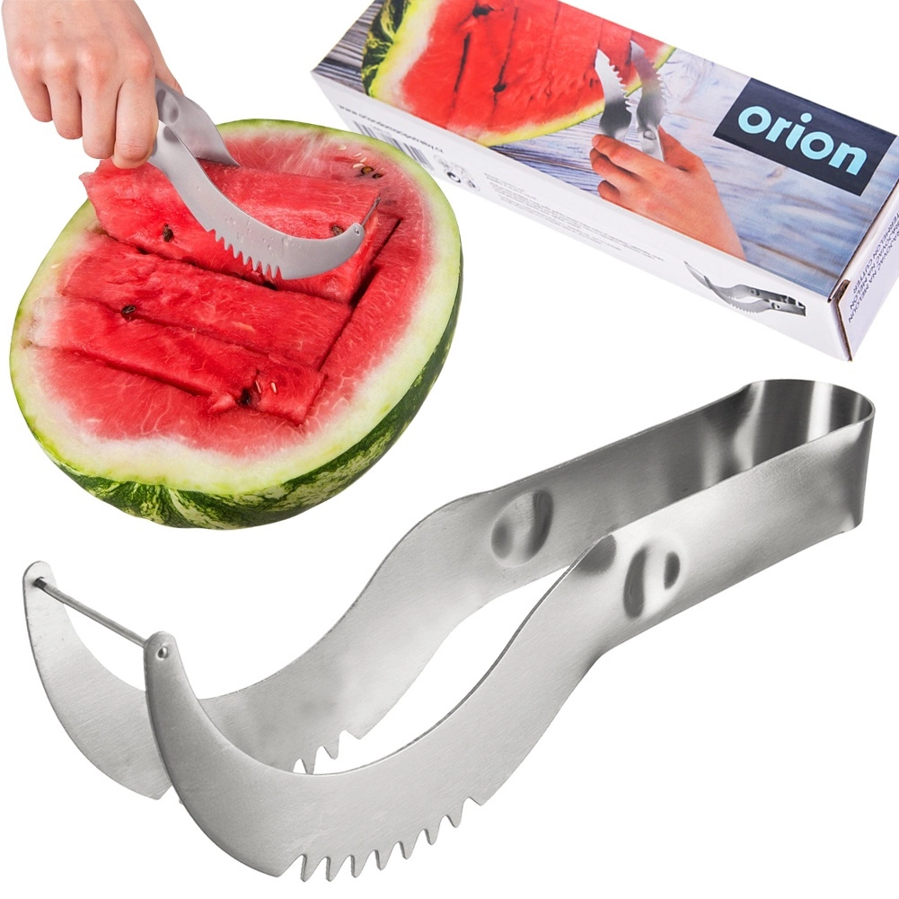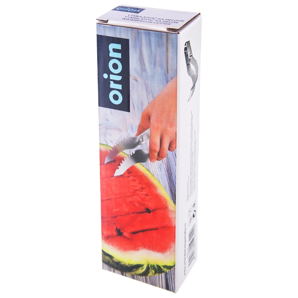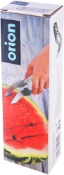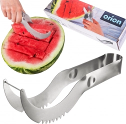 Užite si leto bez námahy – nerezový krájač na melón ORION spája funkciu noža a klieští v jednom. Zakrivené telo so zúbkovaným ostrím vytvára čisté rezy, zatiaľ čo pružná konštrukcia umožní hotové diely jednoducho uchopiť a preniesť na tanier. Ideálne na rýchlu prípravu rovnomerných kociek či hranolčekov z melónu aj iných druhov melónov.