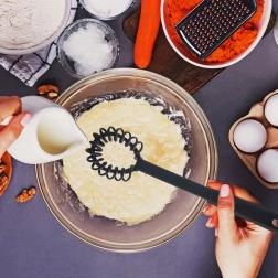Špirála ľahko dosiahne do rohov nádob a pomôže rýchlo vymiešať omáčky aj cestá dohladka bez hrudiek.