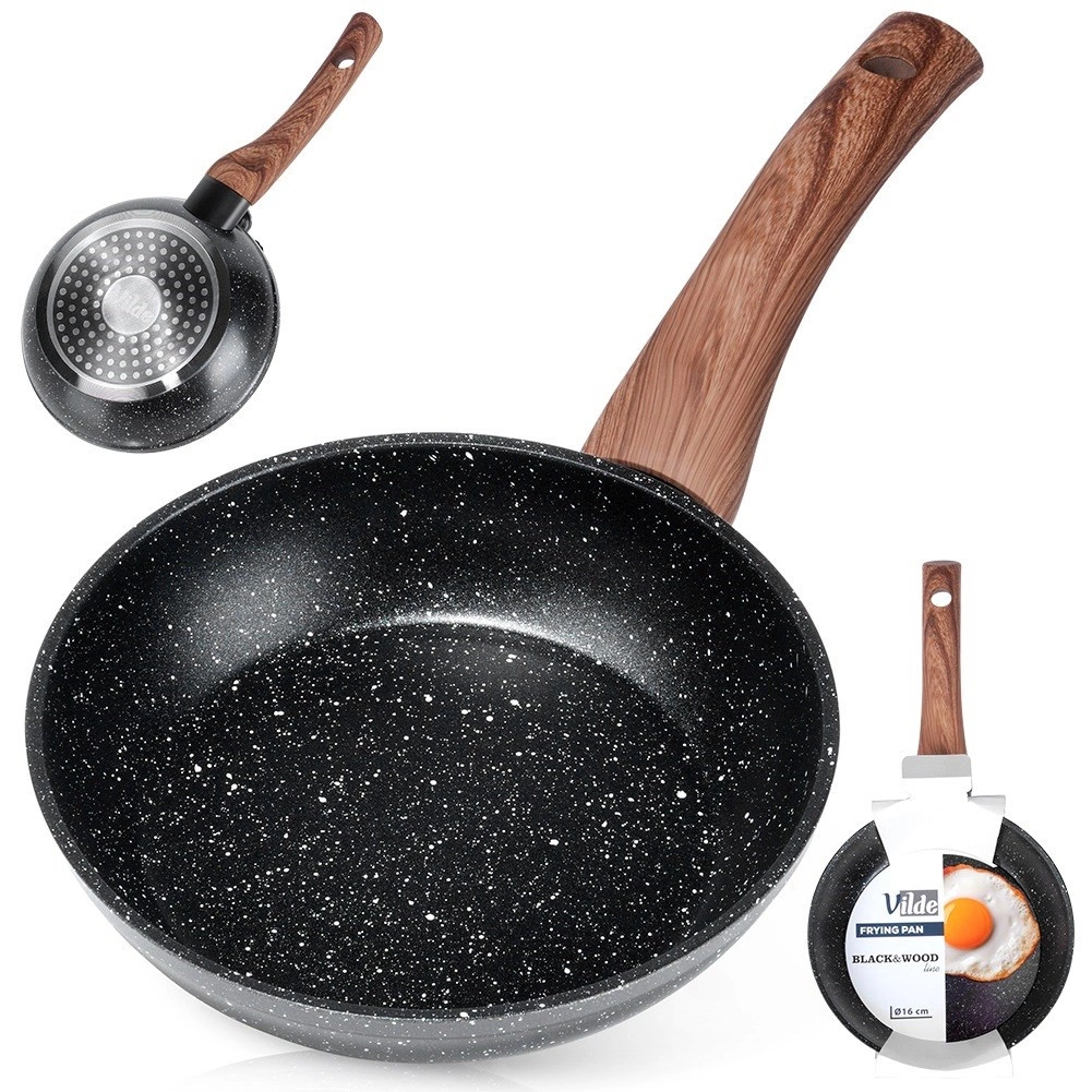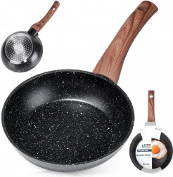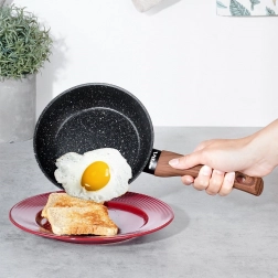 Táto univerzálna panvica z hliníkového odliatku s granitovou nepriľnavou vrstvou je ideálna na vyprážanie aj dusenie menších porcií – vajíčok, zeleniny či mäsa. Štýlové prevedenie v čiernej farbe s dreveným vzhľadom rukoväte skvele zapadne do modernej kuchyne a uľahčí každodennú prípravu pokrmov.