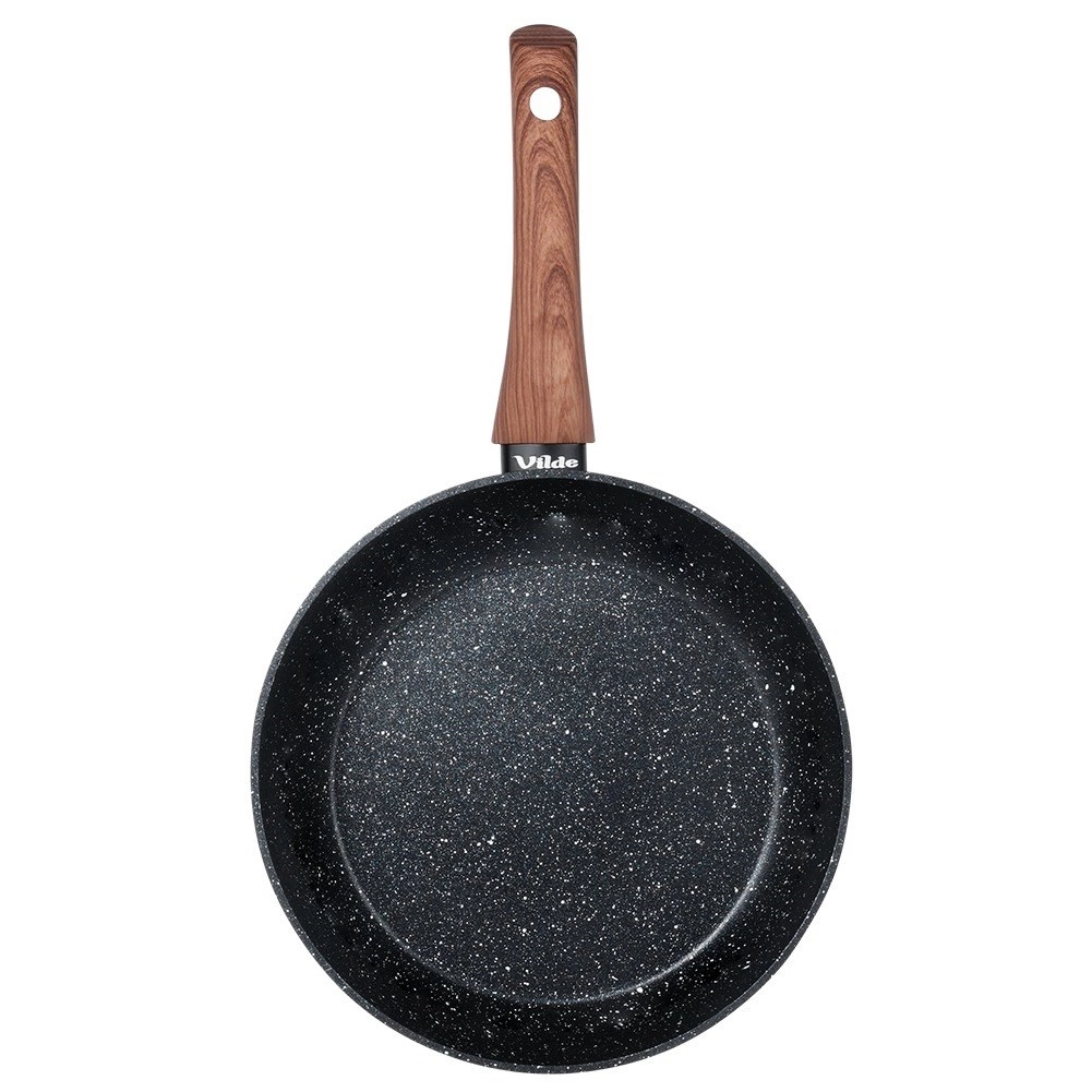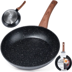Táto štýlová panvica v kombinácii čiernej farby a drevodekoru prináša rýchle a rovnomerné rozloženie tepla pre úsporné vyprážanie a dusenie. Odolná nepriľnavá granitová vrstva minimalizuje pripékane a uľahčuje čistenie, takže pripravíte vajcia, mäso aj zeleninu s menším množstvom oleja.