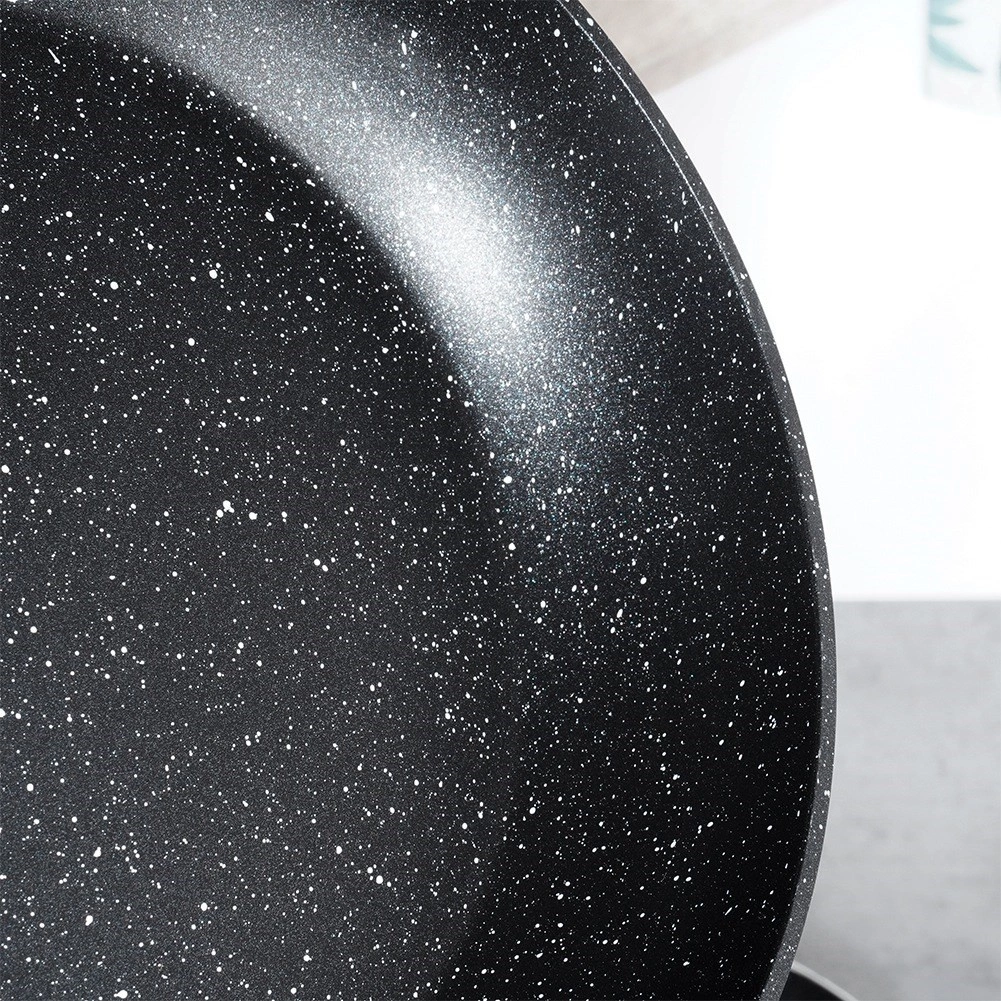 Kvalitná kamenná povrchová úprava zabraňuje pripékaniu a umožňuje variť s minimom oleja. Ľahko sa čistí a je odolná na každodenné používanie.