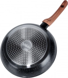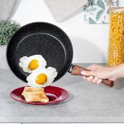 Obľúbená panvica v modernom spojení čiernej a dreva sa stane praktickým pomocníkom na vyprážanie aj dusenie. Odolné hliníkové telo s kvalitnou granitovou nepriľnavou vrstvou zaručuje ľahké uvoľnenie pokrmov a jednoduché čistenie. Ideálna na mäso, zeleninu, vajcia aj rýchle ohrievanie jedál.