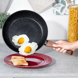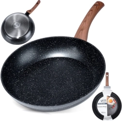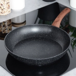 Štýlová granitová panvica s priemerom 28 cm na každodenné varenie. Vďaka nepriľnavému kamennému povrchu, rýchlemu a rovnomernému rozvodu tepla a ergonomickej rukoväti s imitáciou dreva pripravíte zdravé pokrmy s minimom tuku na všetkých typoch sporákov vrátane indukcie.