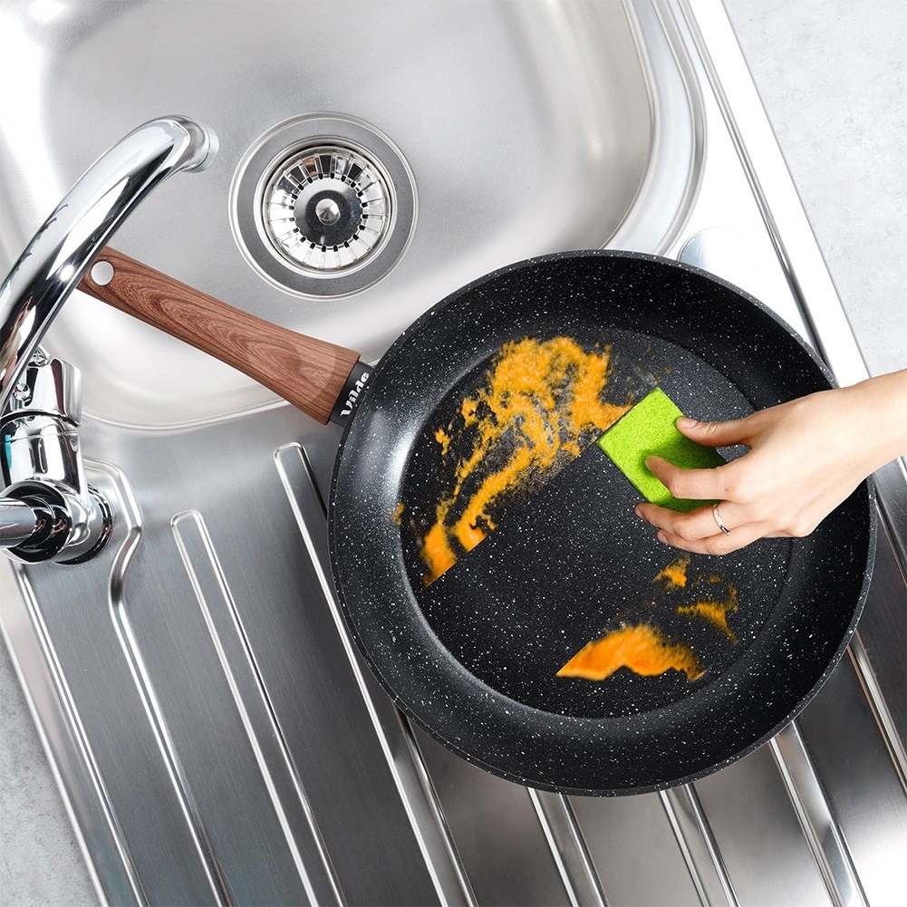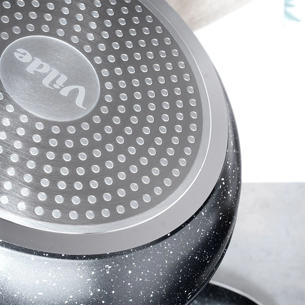 Pevná panvica z liateho hliníka s odolnou nepriľnavou granitovou povrchovou úpravou vyniká skvelou tepelnou vodivosťou a jednoduchým čistením. Moderná kombinácia čiernej a dreva sa hodí do každej kuchyne a zaručí pohodlné varenie, vyprážanie aj dusenie.
