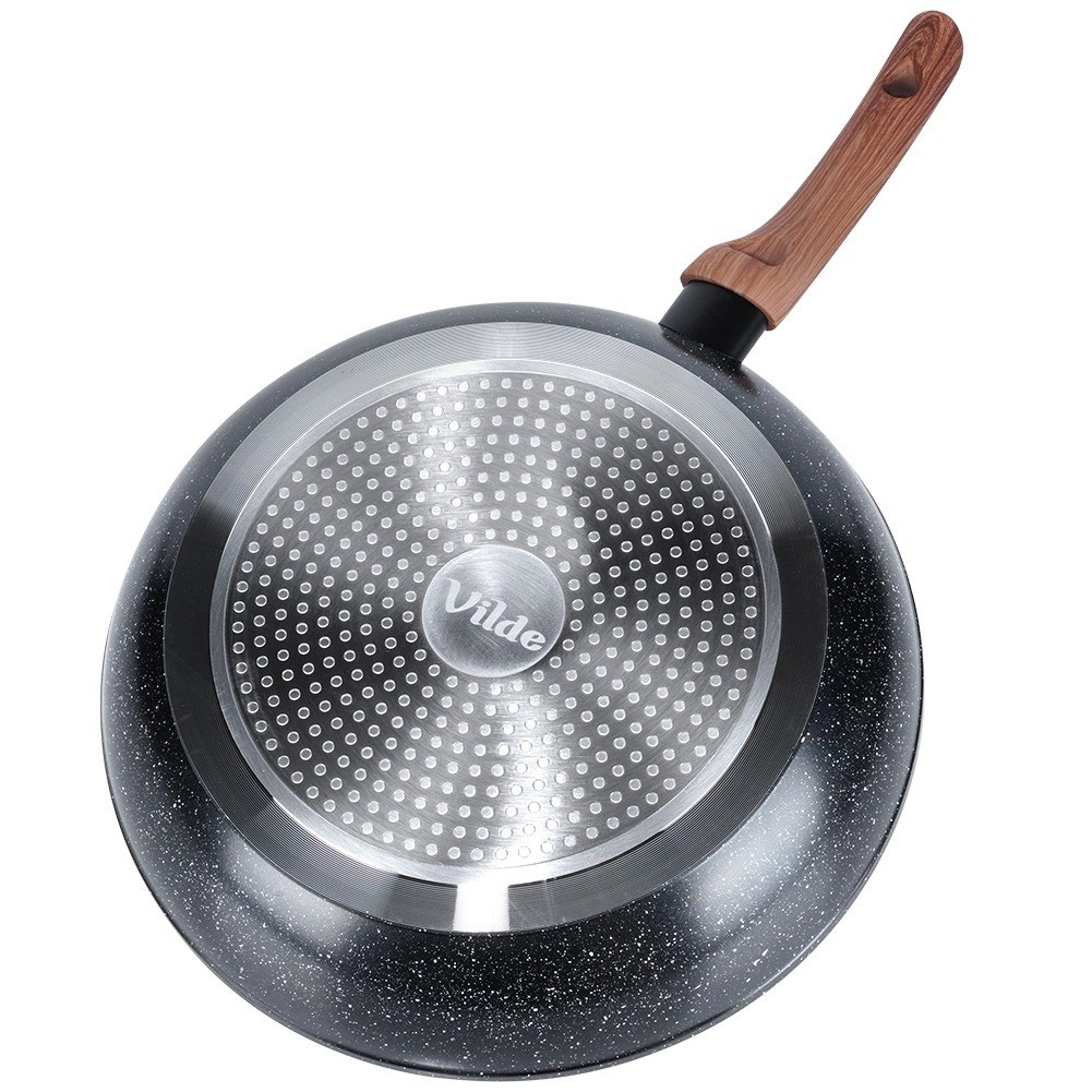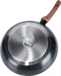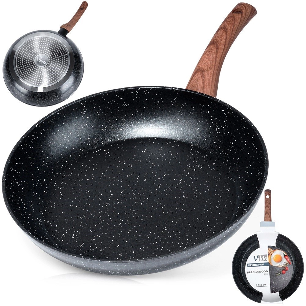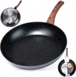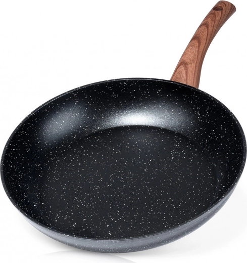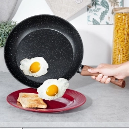 Táto moderná granitová panvica v elegantnej kombinácii čiernej a dreva uľahčí každodenné varenie. Vďaka silnému hliníkovému odliatku a viacvrstvovému neprilnavému povrchu pripravíte mäso, zeleninu aj vajíčka s minimom oleja a bez pripaľovania. Plochá stabilná základňa sa postará o rýchly nábeh tepla a rovnomernú distribúciu po celej ploche.