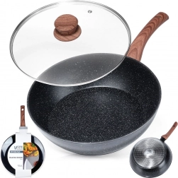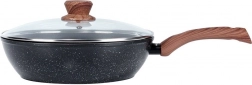 Táto hlboká hliníková panvica s granitovou nepriľnavou vrstvou je ideálna na každodenné varenie: vyprážanie, restovanie aj dusenie. Elegantná kombinácia čiernej farby a dreveného vzhľadu skvelo zapadne do modernej kuchyne, zatiaľ čo sklenená pokrievka umožní kontrolu nad pokrmom a udrží teplo aj vlhkosť.