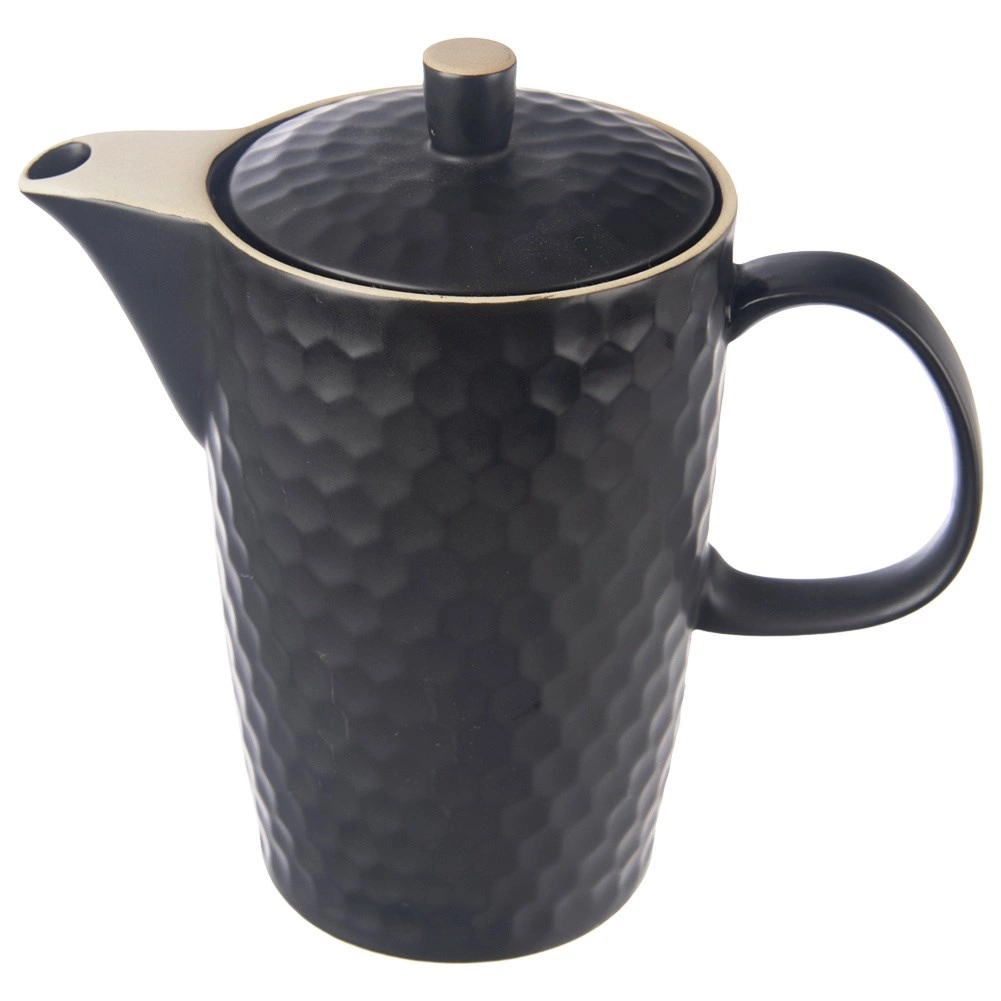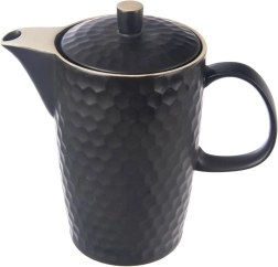 Objavte praktickú a dizajnovú kanvicu TEA TIME z odolnej kameniny v matnom čiernom prevedení. Textúrovaný povrch inšpirovaný včelími plástmi dodá vášmu stolovaniu moderný nádych, zatiaľ čo veko s úchytom pomôže udržať nápoje dlhšie teplé a chrániť ich pred nečistotami.