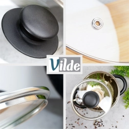 Pokrievka urýchľuje varenie aj smaženie, bráni striekaniu vody a tuku a pomáha udržať teplotu pokrmov po dovarení. Vetrací otvor zabezpečuje bezpečný únik pary a stabilný tlak pod pokrievkou.