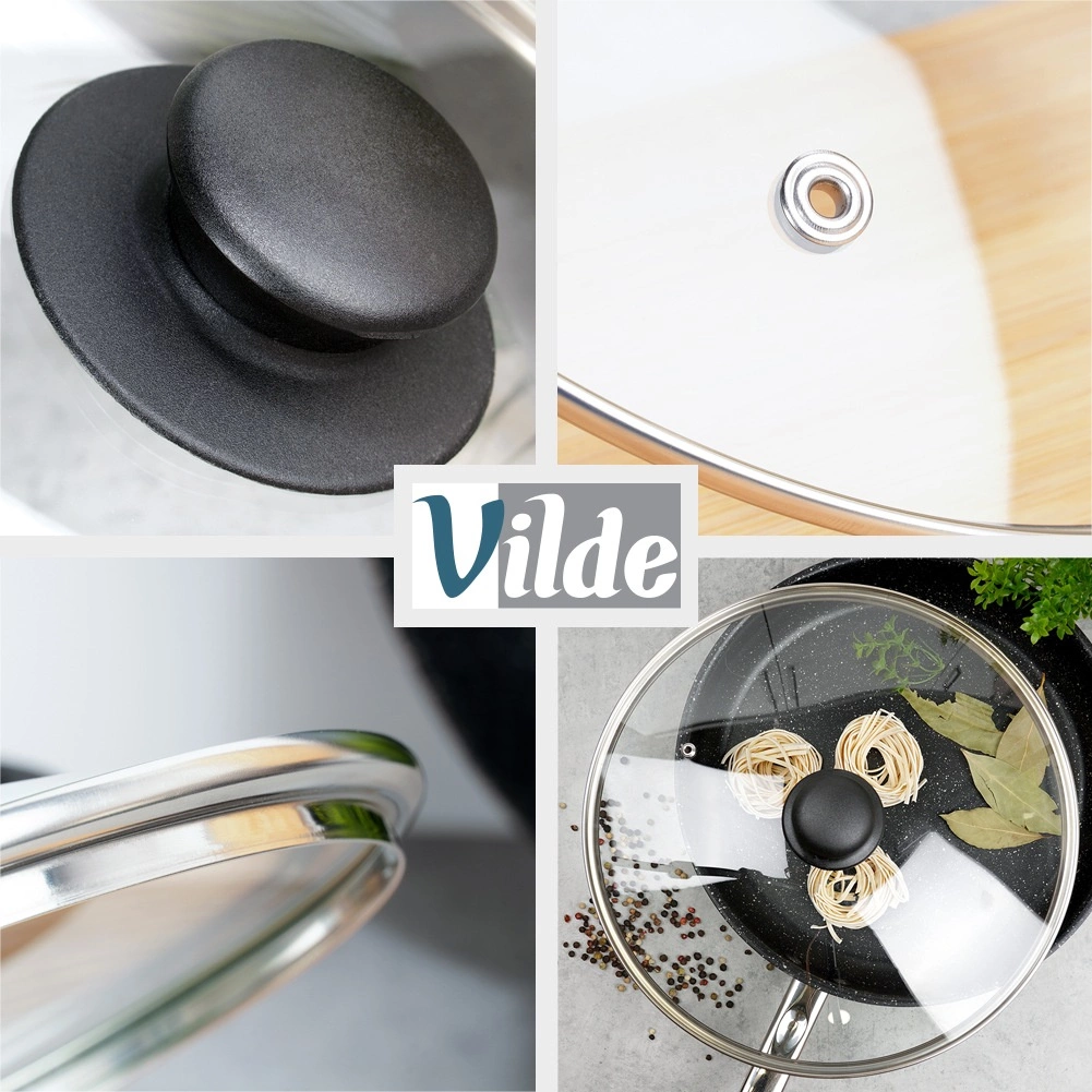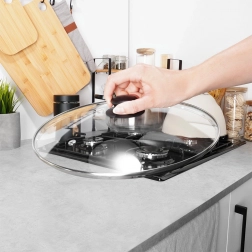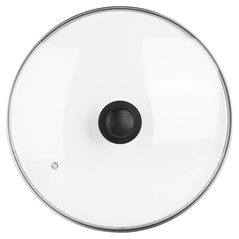 Integrovaný odvetrávací otvor reguluje prebytočnú paru a mierne vypuklý tvar napomáha cirkulácii horúceho vzduchu. Ergonomický čierny gombík z odolného materiálu sa príjemne drží a uľahčuje manipuláciu. Pokrievka je vhodná do umývačky a odoláva teplotám až +200 °C.