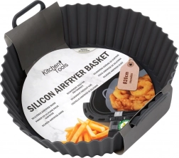 S týmto sivým silikónovým košom udržíte svoju teplovzdušnú fritézu bez námahy čistú. Vložku jednoducho vložíte do koša fritézy, pripravíte hranolky, kuracie mäso či zeleninu a po dovarení ju vyberiete za praktické úchyty. Nepriľnavý povrch uľahčuje servírovanie aj umývanie a zároveň bráni pripaľovaniu.