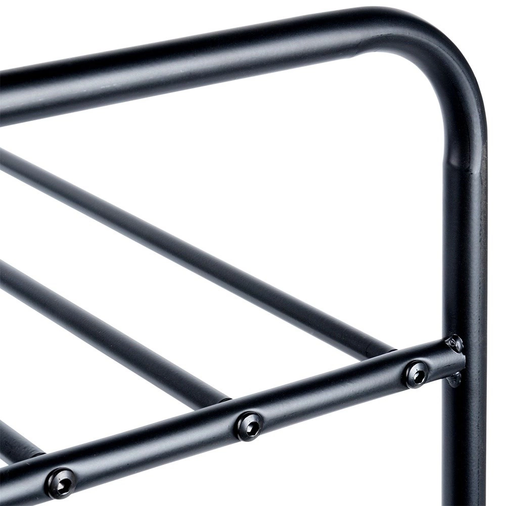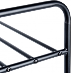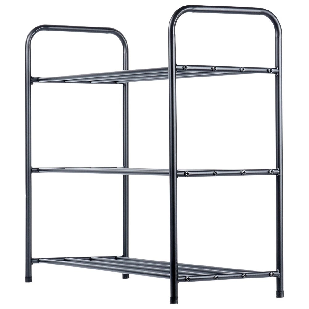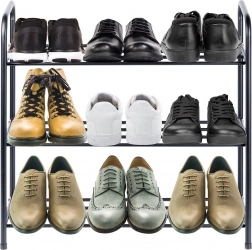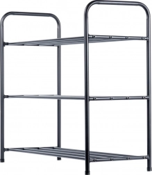 Tento trojposchodový kovový botník zaistí poriadok a prehľad vo vašej domácnosti. Otvorená konštrukcia s rúrkovými roštami umožňuje cirkuláciu vzduchu a udržiava obuv vetranú a rýchlo prístupnú. Robustný rám z práškovo lakovaného kovu v čiernej matnej farbe je stabilný a odolný, pritom ľahký na jednoduché premiestňovanie.