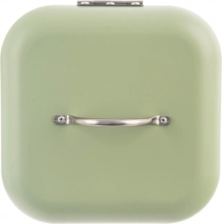 Pastelovo zelený kovový korpus šetrí miesto na pracovnej doske a zároveň chráni pečivo pred pomačkaním.