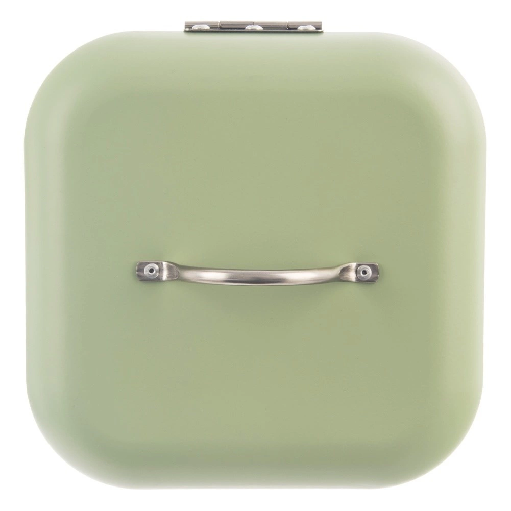 Elegantný chlebník z kolekcie GREENISH je skvelým riešením na uchovanie čerstvosti pečiva. Uzavretá kovová nádoba obmedzuje prístup vzduchu, čím spomaľuje vysychanie a udržiava skvelé aróma aj chuť. Pastelovo zelené prevedenie s nerezovým madlom pôsobí moderne a ľahko sa kombinuje s ostatnými doplnkami v kuchyni.